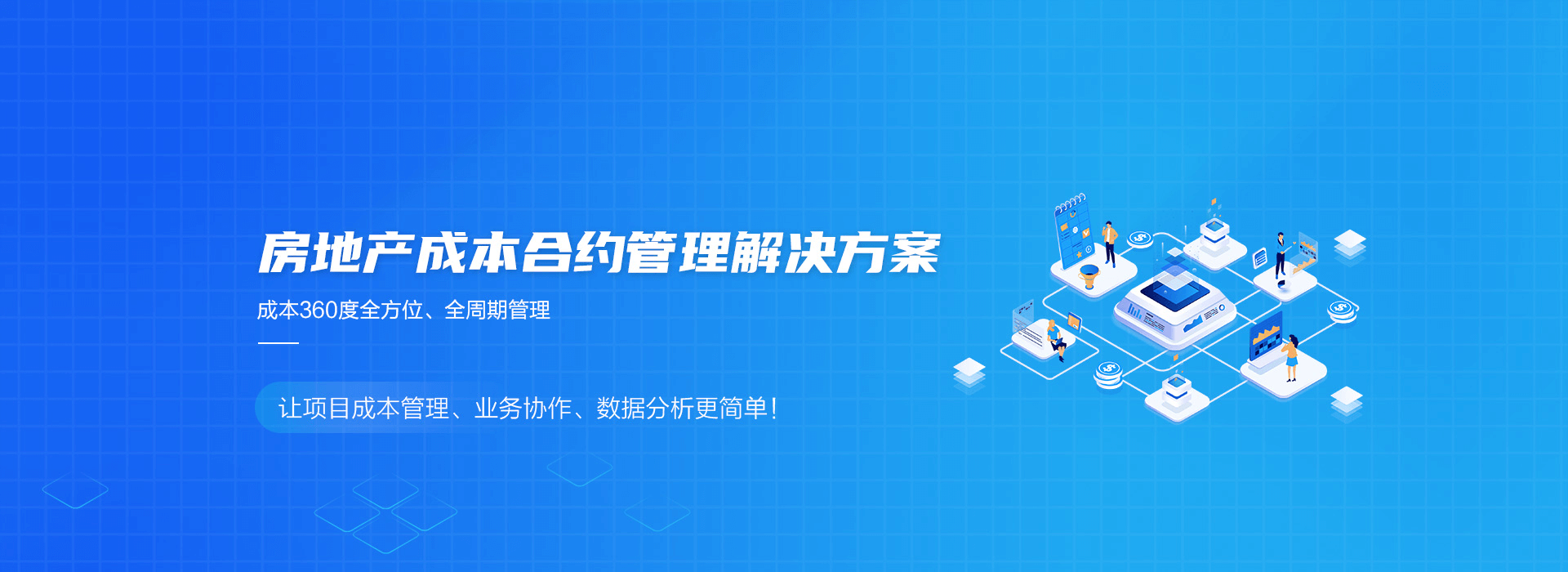 咨詢梳理,快速實施;成本科目+合約規劃雙重管控;成本、 財務一體化應用協同;成本數據可視化,項目高效決策分析。